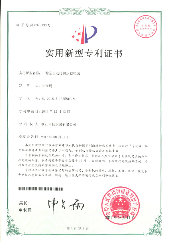 我們堅信"科學技術是第一生產(chǎn)力",不斷(duàn)提高產(chǎn)品的技術水平和科技含量,先後獲得數十項發明專利和(hé)實用新型專利,2016年獲批台州市級高新技術企業,2017年同時獲(huò)批省(shěng)級和國家級高新技術企業,2018年(nián)獲批(pī)"台州市級企業技術中心",2019年獲評(píng)台(tái)州(zhōu)市"瞪羚企(qǐ)業(yè)"和"溫嶺市百強企(qǐ)業",並當(dāng)選為"溫嶺市泵與電機標準化技術委員會"首屆委員單位,發展後勁不斷(duàn)增強。
