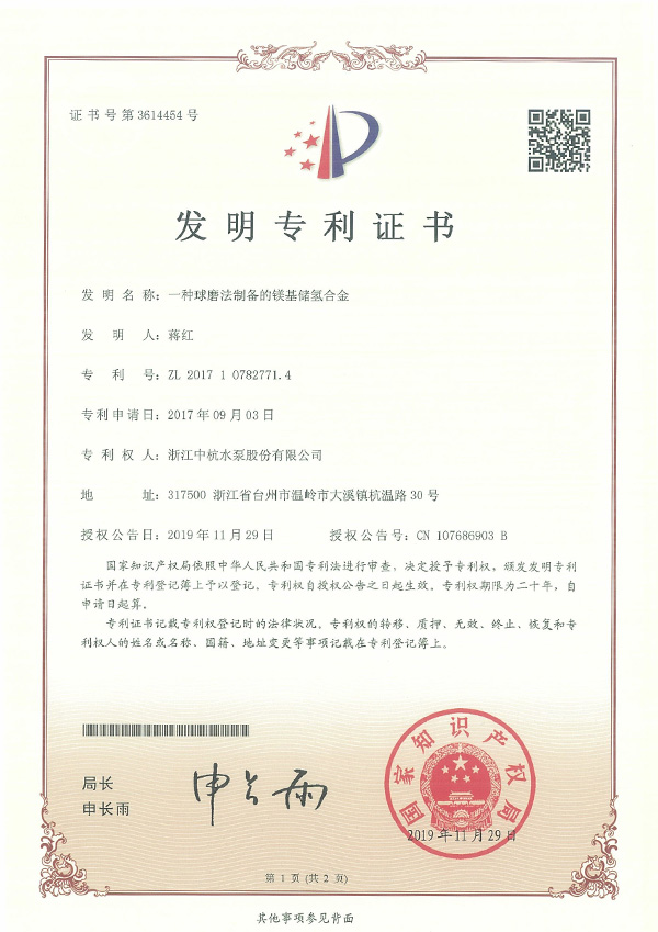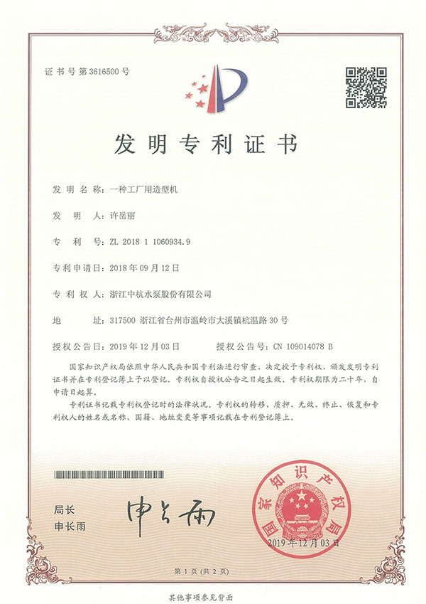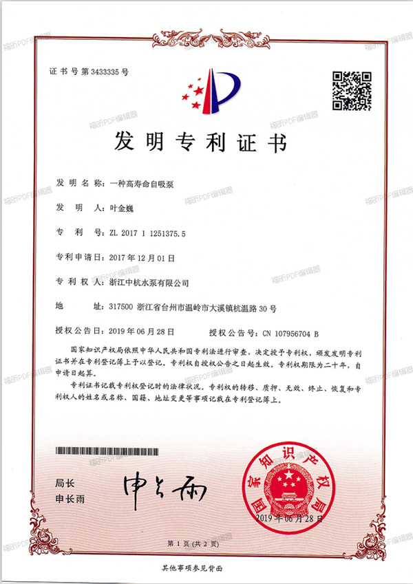 香蕉在线播放水泵 資質與專利